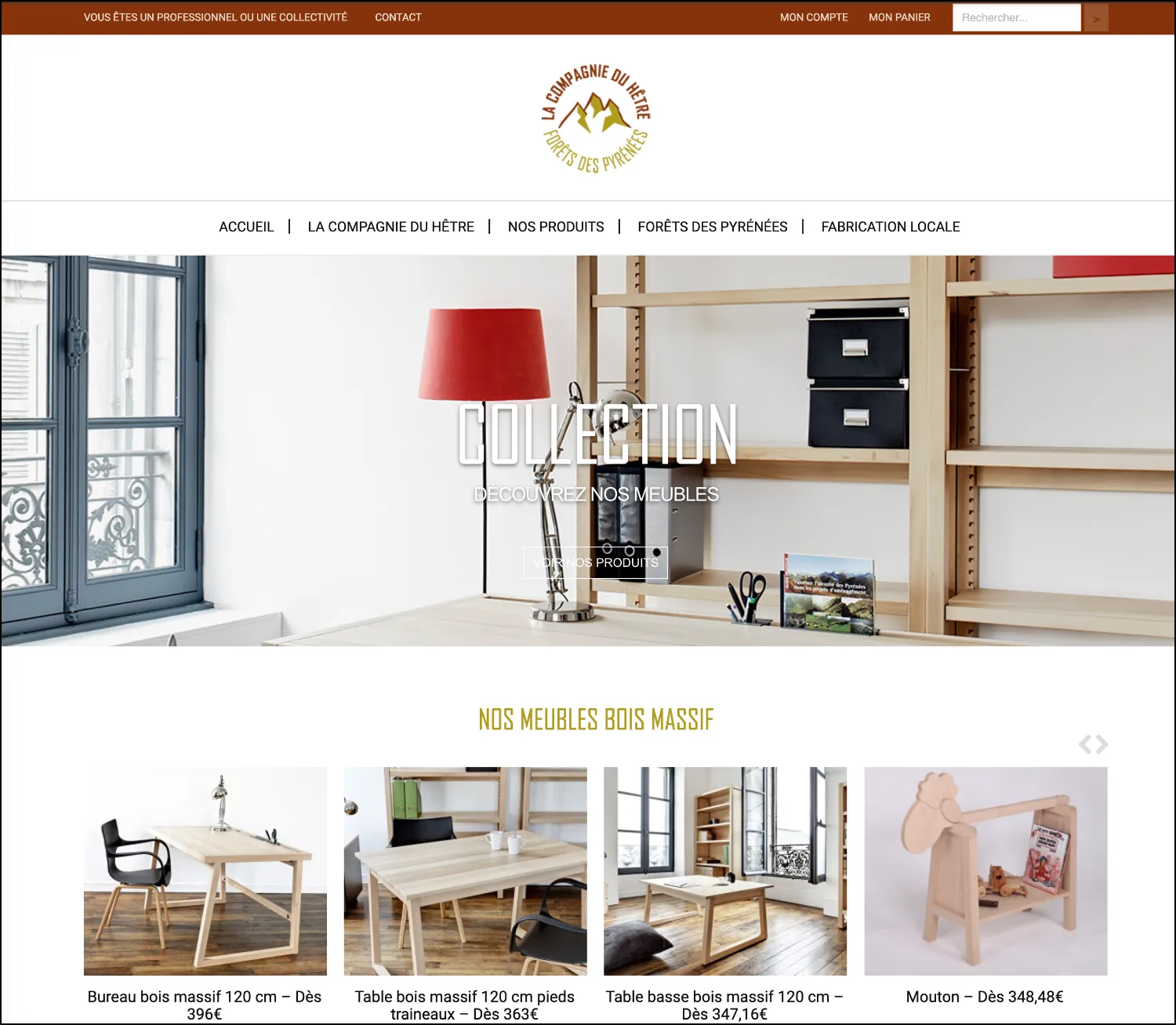 Spécialisée dans le développement de meubles simples, aux finitions soignées, réalisés en bois des Pyrénées, la Compagnie du Hêtre disposait d’un site internet ne reflétant pas l’image de la société.